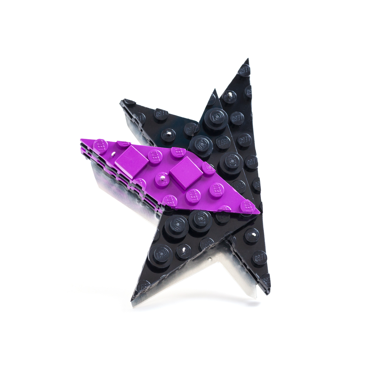 repurposed LEGO®, fine silver back plate, Argentium silver, stainless steel pin